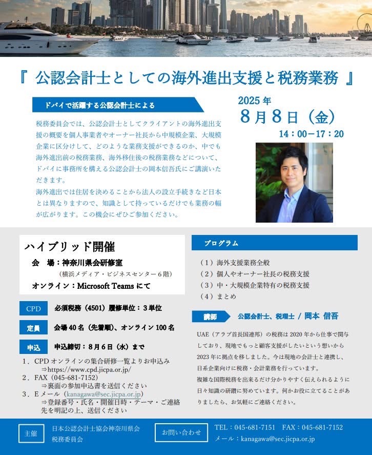 税理士・公認会計士(日本・UAE)。ドバイ在住。日本とドバイで会計事務所を経営しています。税務顧問や会計監査、ドバイへの移住支援を行っています。